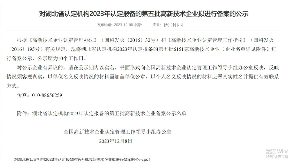 新區(qū)公司所屬單位新雅景公司已通過(guò)湖北省科學(xué)技術(shù)廳“?新技術(shù)企業(yè)”認(rèn)定”,于12月8日在“國(guó)家高新技術(shù)企業(yè)認(rèn)定網(wǎng)復(fù)函名單”上公示。 正式邁??新技術(shù)企業(yè)?列!