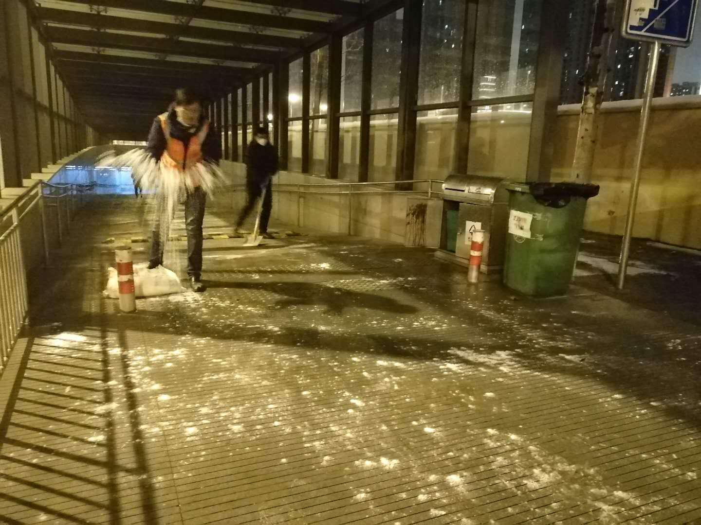 公司緊急組織施工單位、下屬單位人員30余人、貨用車5臺(tái),儲(chǔ)備融雪劑15噸,準(zhǔn)備應(yīng)急除雪。下午17:00左右,公司出動(dòng)車輛4臺(tái),對(duì)江城大道四新南、北路通道及三青路下穿通道,四新南、北路跨國博大道立交等重點(diǎn)部位預(yù)撒融雪劑,19時(shí)許,按照集團(tuán)公司應(yīng)急辦指示赴國博洲際酒店上下匝道處撒融雪劑,確保軍醫(yī)醫(yī)療進(jìn)出通道通暢。